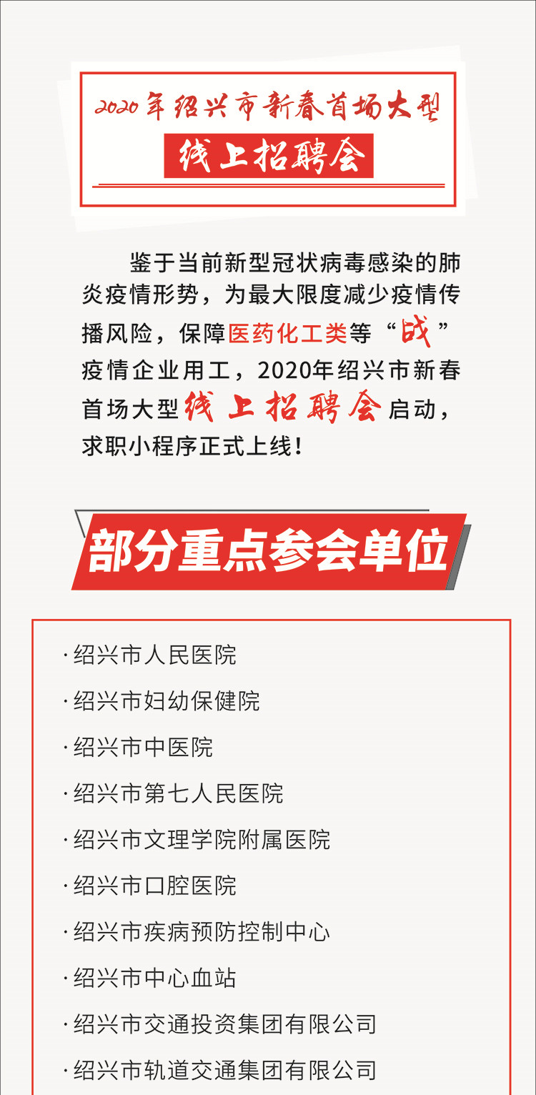 下面,再给大家介绍一下我们的主打活动——2020年绍兴市新春首场大型线上招聘会。