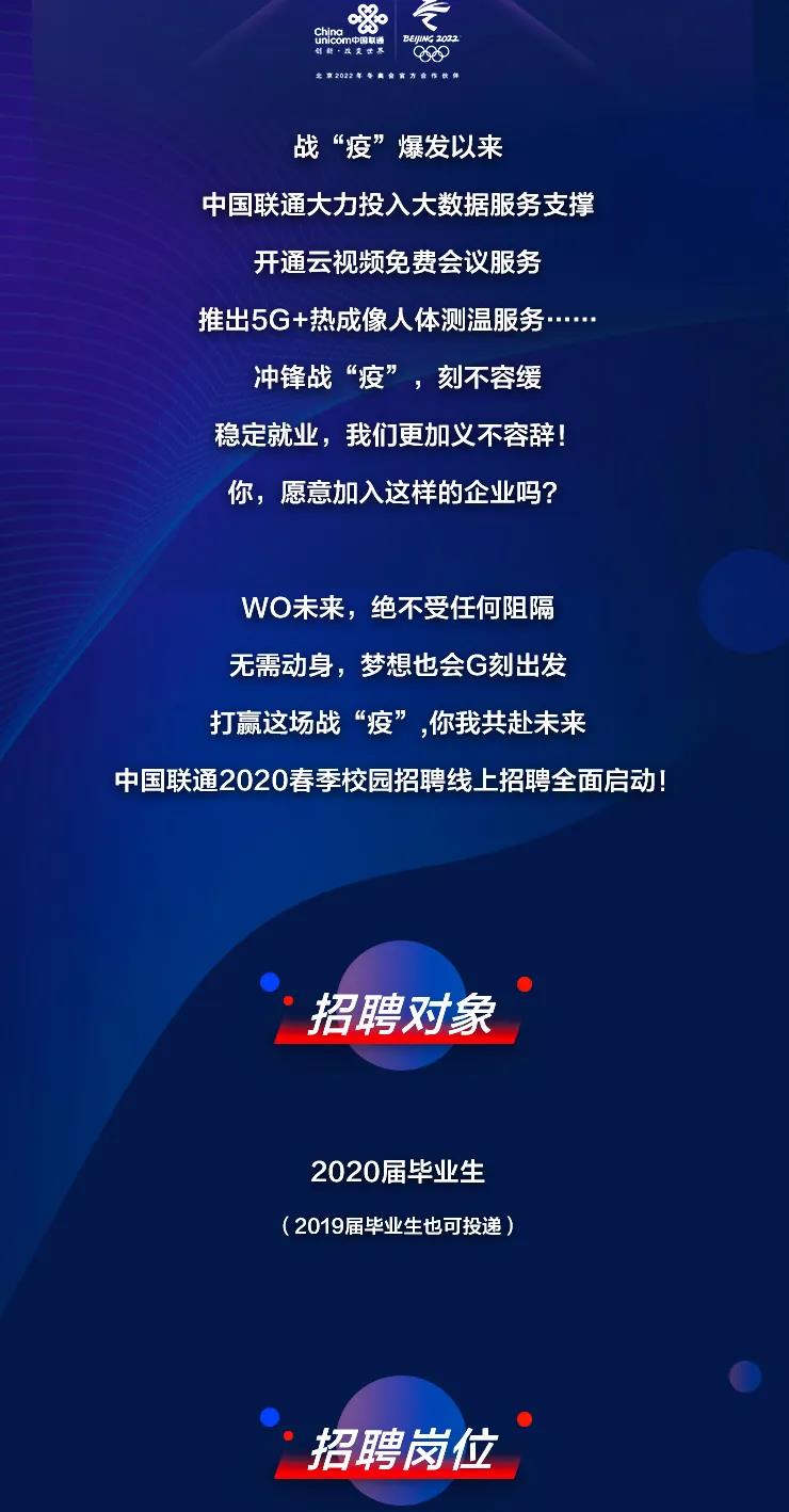 中国联通2020线上春季校园招聘正式启动