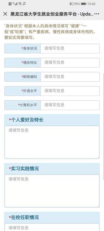学生可以修改的字段有:本人手机、电子邮箱、QQ号码、家庭地址、家庭邮编、家庭电话、家庭联系人,其他的信息只可以核对,如发现存在问题请联系学校就业老师进行修改。