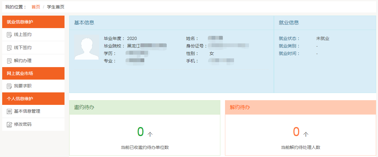 (3)邀约待办:展示学生共收到多少份用人单位发来的签约邀请函。