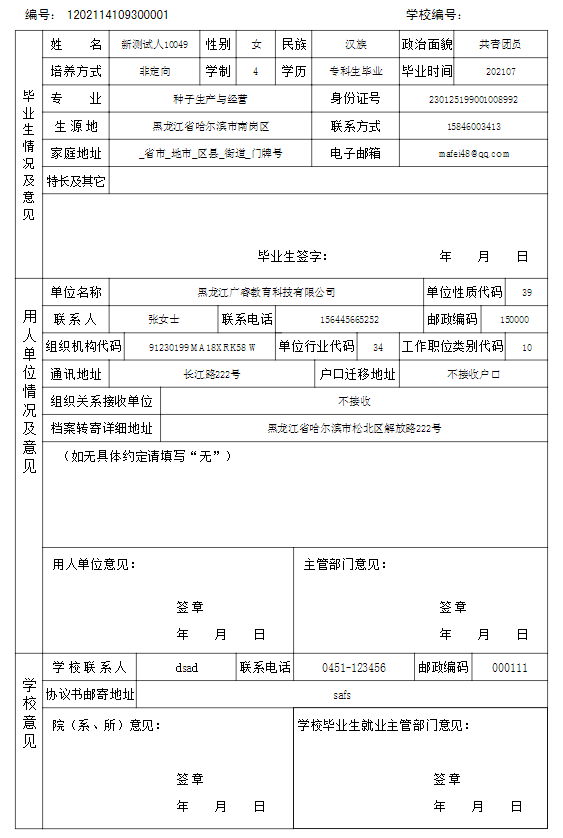 审核通过:则此次签约完成,学生可以下载三方协议书并形成就业信息。