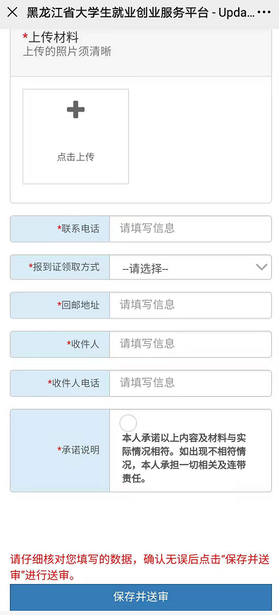 根据页面字段信息填写就业信息上报,点击【保存并送审】即可提交,如下图所示: