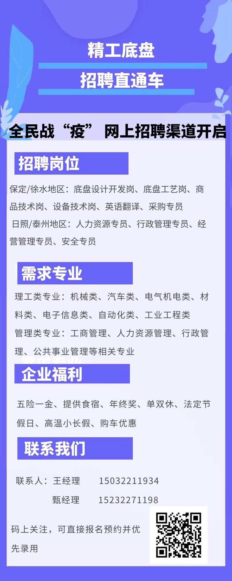 工作城市:河北省保定市,江苏省泰州市,山东省日照市