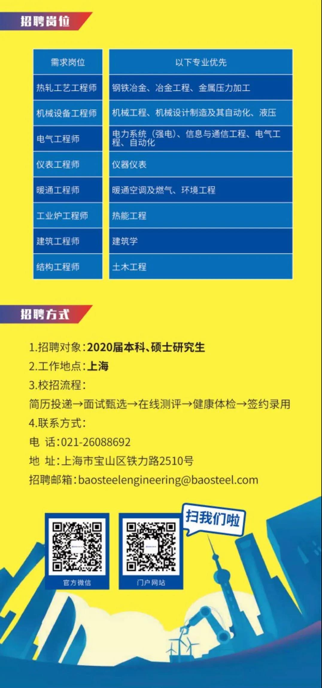 宝钢工程2020春季(线上)校园招聘