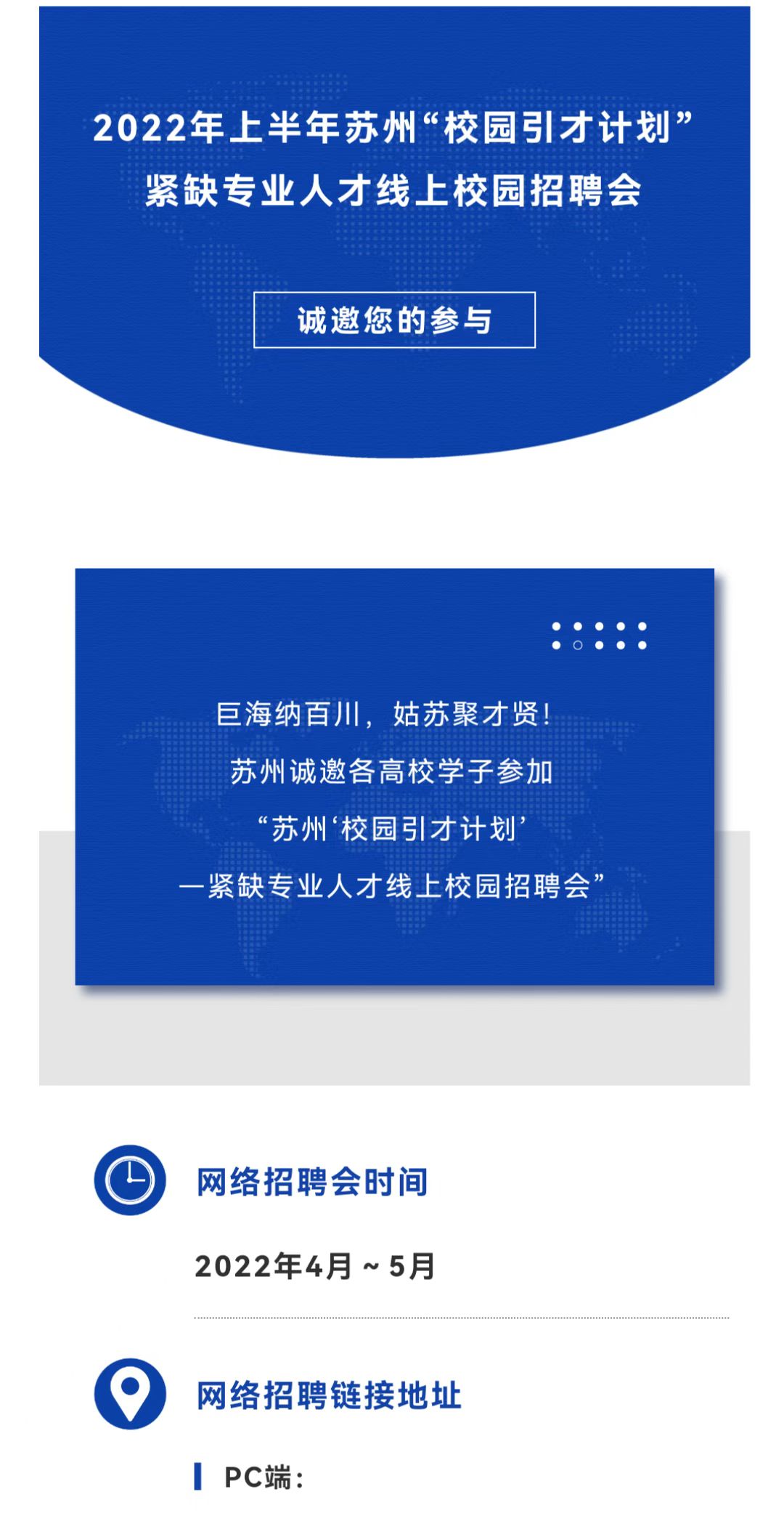诚邀各高校学子参加2022年上半年苏州“校园引才计划”-紧缺专业人才线上校园招聘会