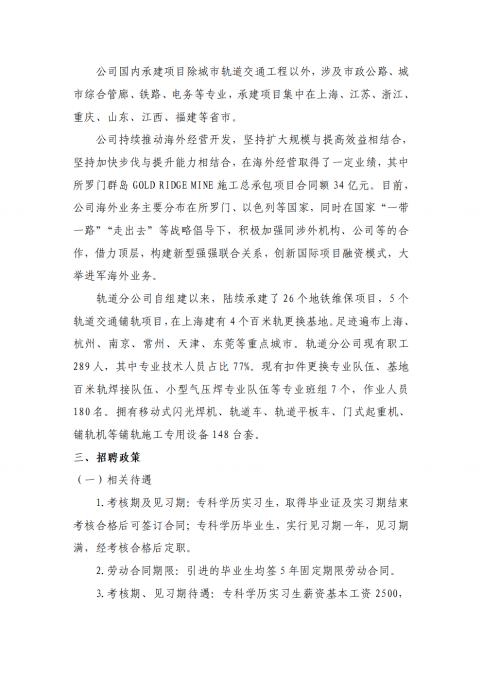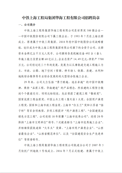 中铁上海工程局集团华海工程有限公司 招聘简章