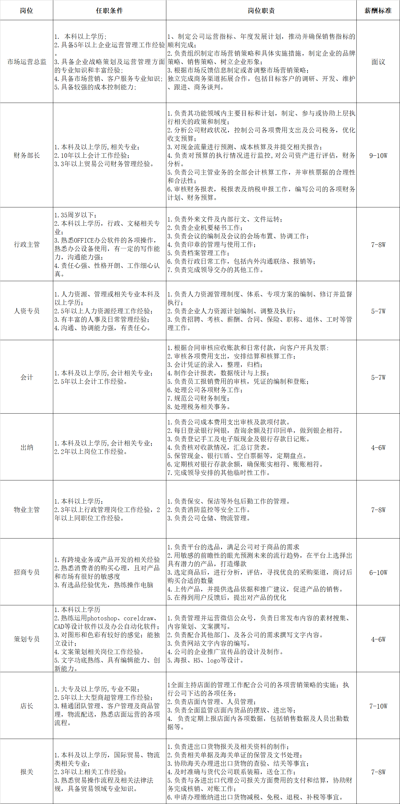 根据公司发展需要,现面向社会公开招聘以下人员。