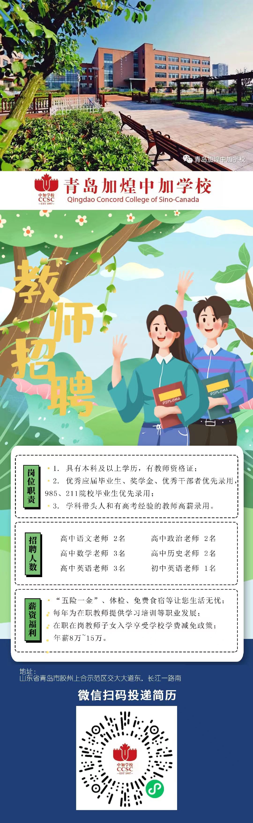 青岛加煌中加学校招聘公告