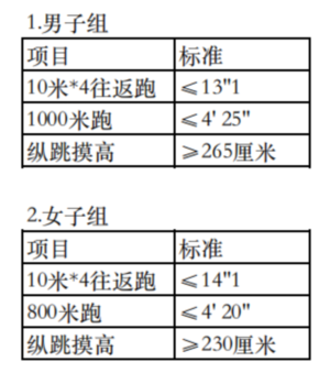 (二)体能测试项目和标准: