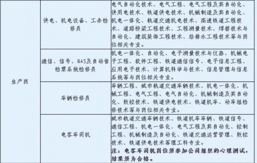 ??检修员岗位招聘对象为2022、2023届全日制大专及以上毕业生;电客车司机岗位招聘对象为2022、2023、2024届全日制大专及以上毕业生。