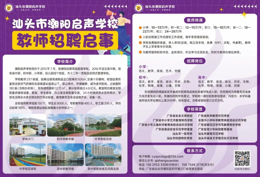 ?汕头市潮阳启声学校教师招聘启事