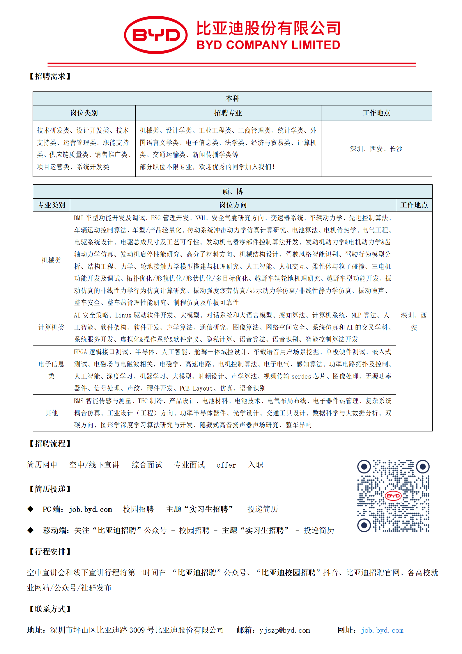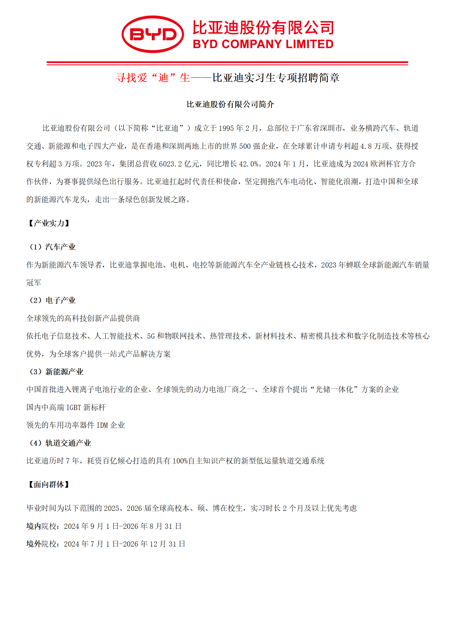 寻找爱“迪”生——比亚迪实习生专项招聘