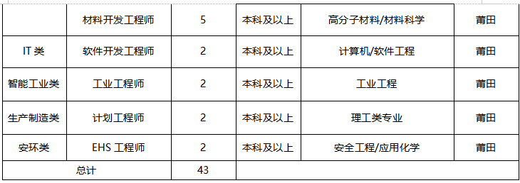 2、招聘岗位及专业:针对机械设计制造及自动化、电气工程及其自动化、高分子材料、化学工艺与工程、材料工程、车辆工程、计算机科学与技术、软件工程等专业共招聘96个岗位。