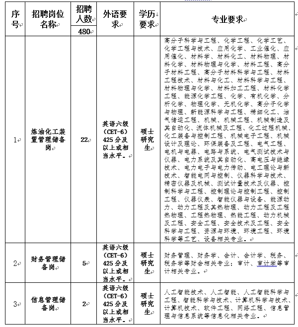 需求专业及应聘流程详细要求以中国石化招聘网公布为准。