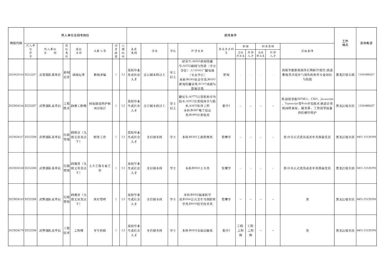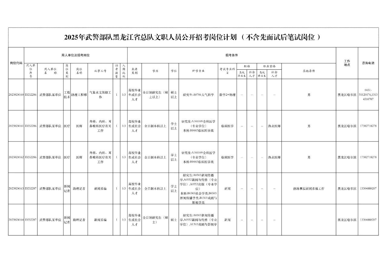 2025年毕业的定向生、委培生,在职军队文职人员(公告发布之日)原则上不得报考。