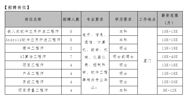 2、招聘平台投递:BOSS直聘、智联、猎聘、前程无忧等,平台搜索“厦门雅迅”进行投递;
