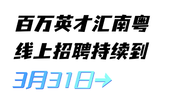 百万英才汇南粤@求职者,线上招聘持续到3月31日,别错过→
