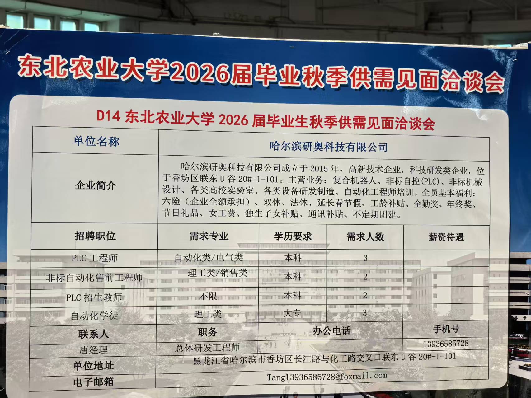东北农业大学2026届毕业秋季供需见面洽谈会