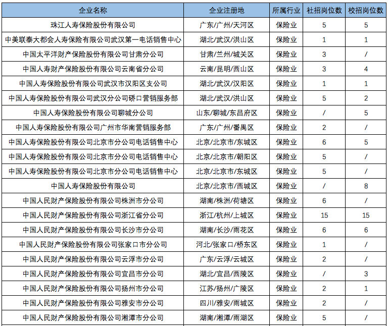 特别精选:保险类企业招聘情况汇总↓下滑寻找你所意向的岗位吧↓保险类企业