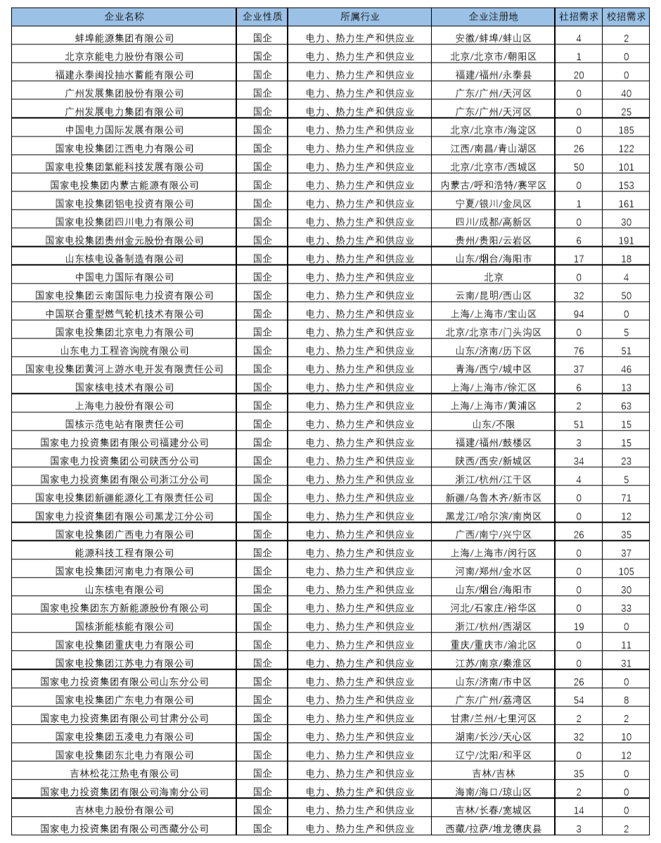 电力、热力生产和供应业类岗位汇总 ↓下滑寻找你所意向的岗位吧↓国企单位