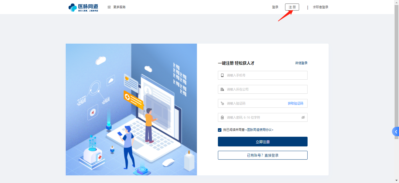 https://hr.yimaitongdao.com/login/register选择立即注册(医脉同道,合作单位点击立即登录)