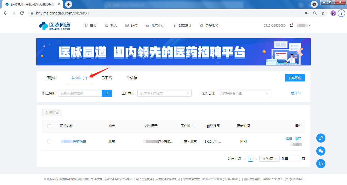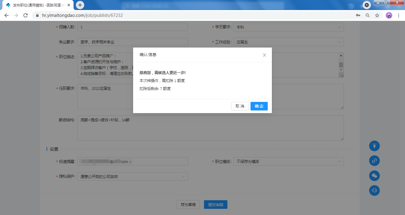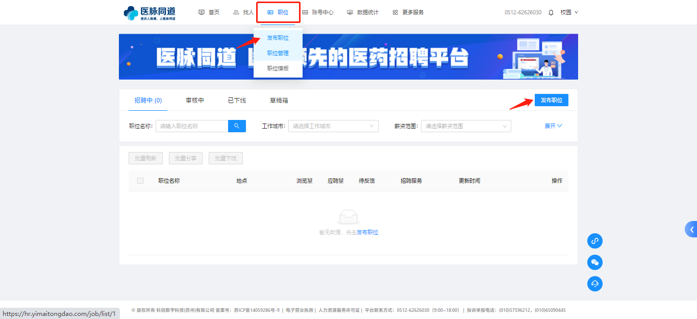 4.发布职位后即为报名完成,待工作人员审核通过后即可全部展示在招聘会页面