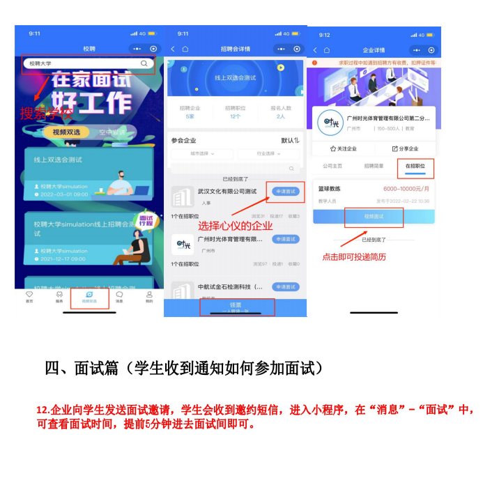 求职者扫码进入参会,针对意向单位、岗位投递简历,亦可通过即时聊天与单位即时沟通或直接开展视频面试。