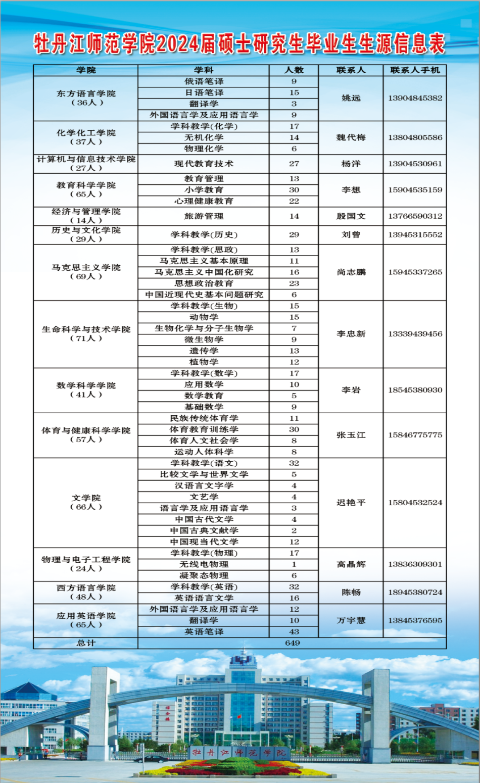 感谢贵单位多年来对我校就业工作的支持!为做好我校2024届毕业生就业工作,持续为毕业生与用人单位搭建供需双选桥梁,我校拟于2024年3月23日,举办“牡丹江师范学院2024届毕业生春季校园招聘会”,现诚邀全国各地用人单位莅临参会。