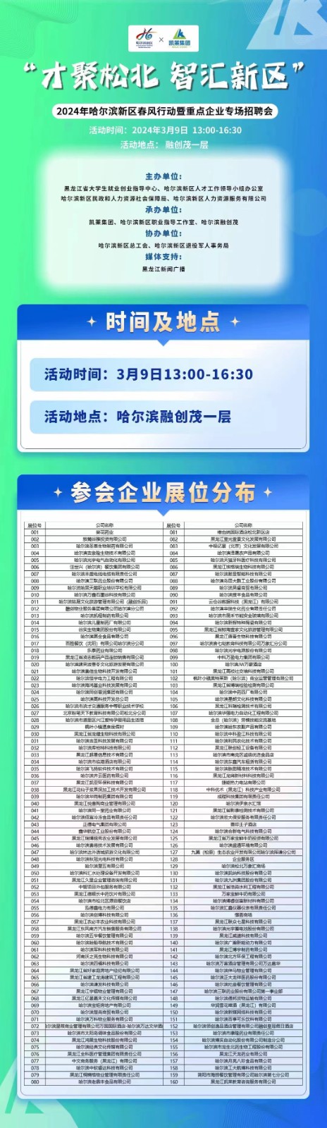 “才聚松北 智汇新区”- 2024年哈尔滨新区春风行动暨重点企业专场招聘会