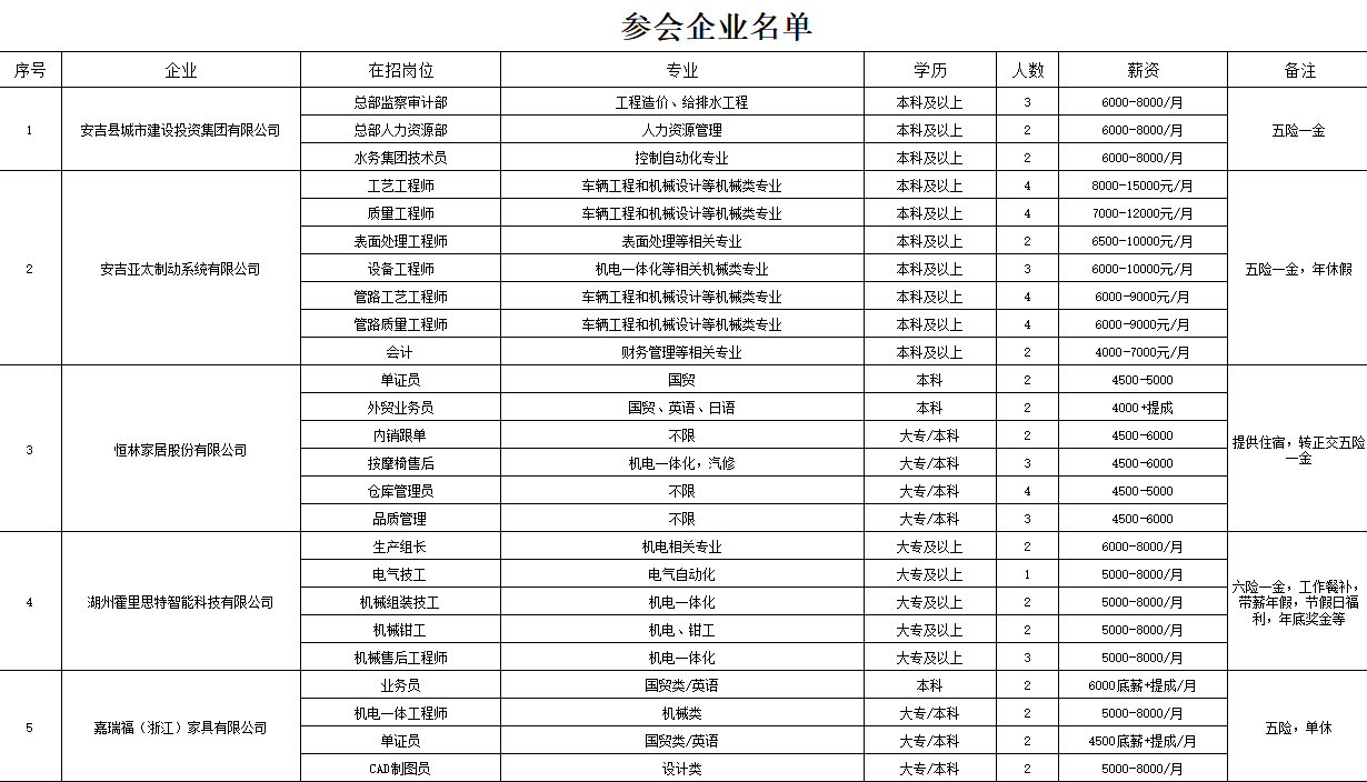 为进一步加大大学生招引力度,畅通人才引进渠道,切实吸引一批人才到安吉就业创业,我校与安吉县沟通,安吉县组织了重点企业来我校开展直通招聘和政策宣传活动。具体活动安排如下: