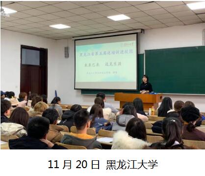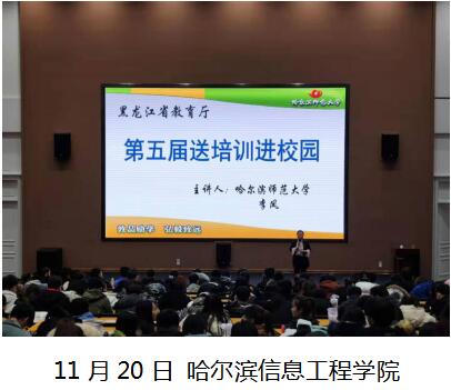 12月23日,省教育厅第五届“送培训进校园”活动圆满结束。该活动于11月中旬启动,历时一个月时间,由省大学生就业创业指导中心组织就业创业指导讲师团,分赴哈尔滨、齐齐哈尔、佳木斯、绥化等11个地市的63所高校开展专题培训136场,累计培训师生达20000余人次。活动在组织形式、讲师组成及培训内容等方面较往届均有提升,切实发挥了提高大学生就业创业能力、加强高校就业创业指导师资队伍和课程体系专业化建设的作用。