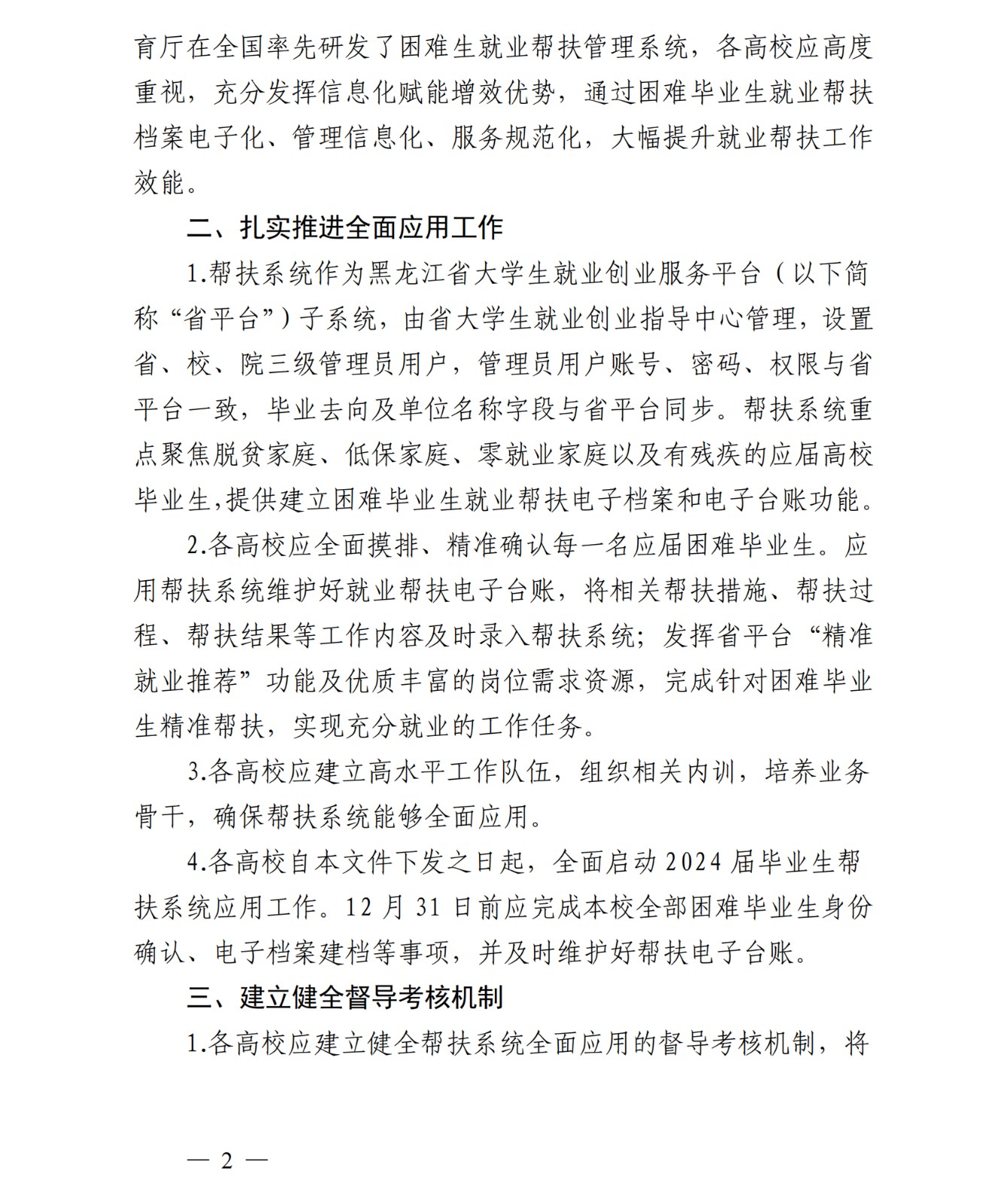 黑龙江省教育厅关于全面应用困难毕业生就业帮扶管理系统的通知