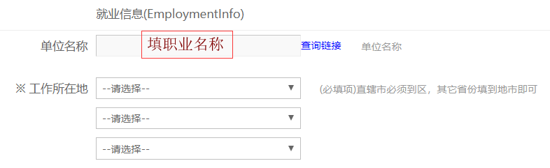 4.“工作所在地”直辖市的必需到区,其他省份的到市县,不到区。“单位名称”填“职业名称”。