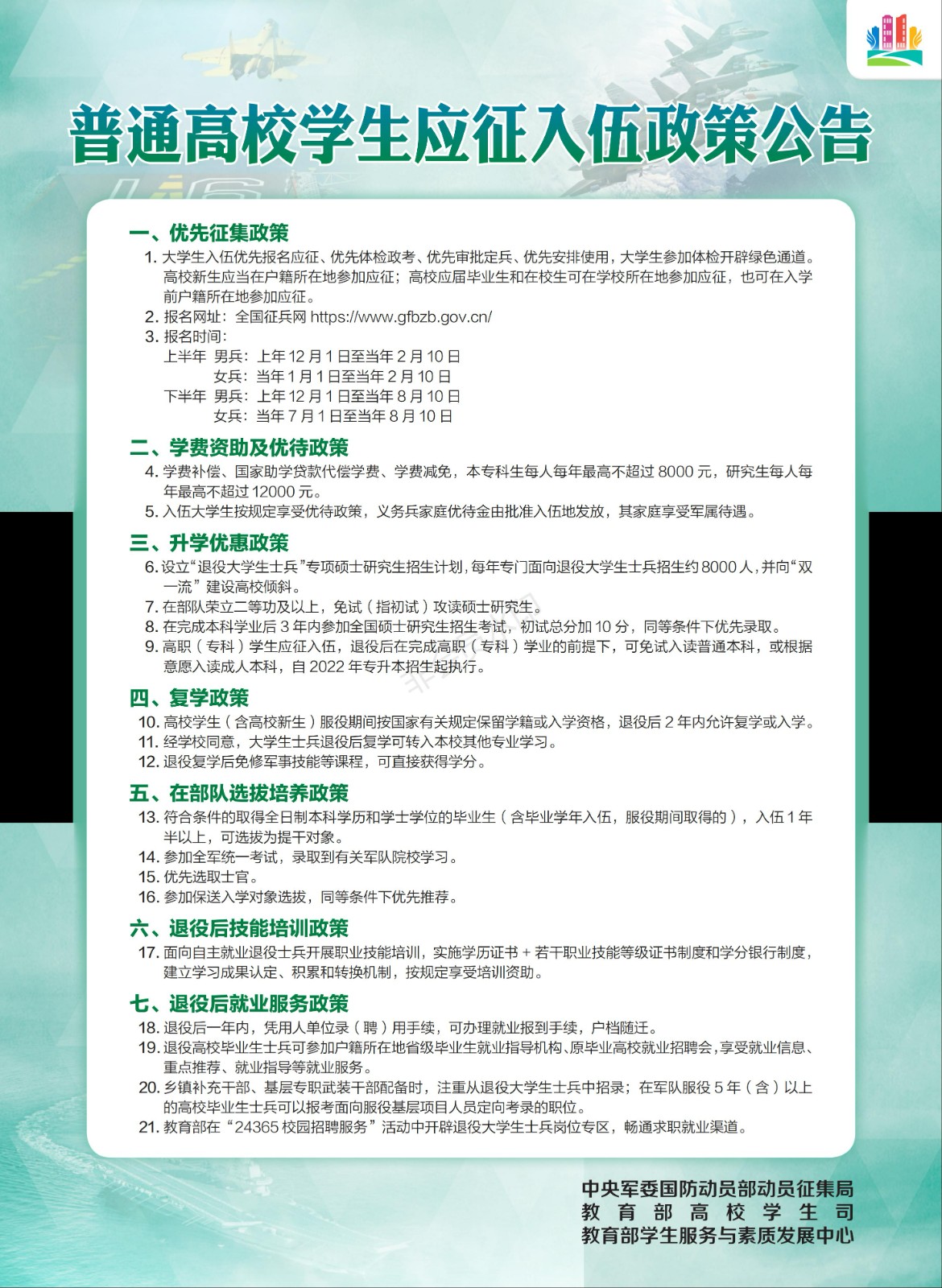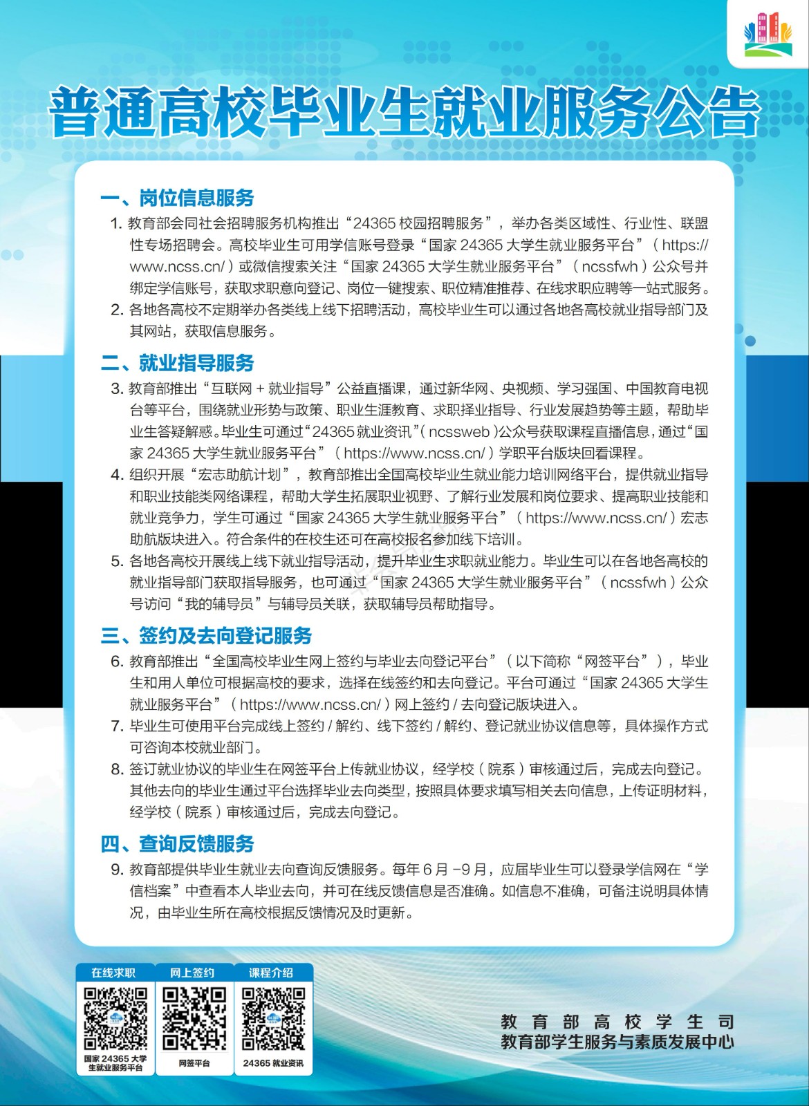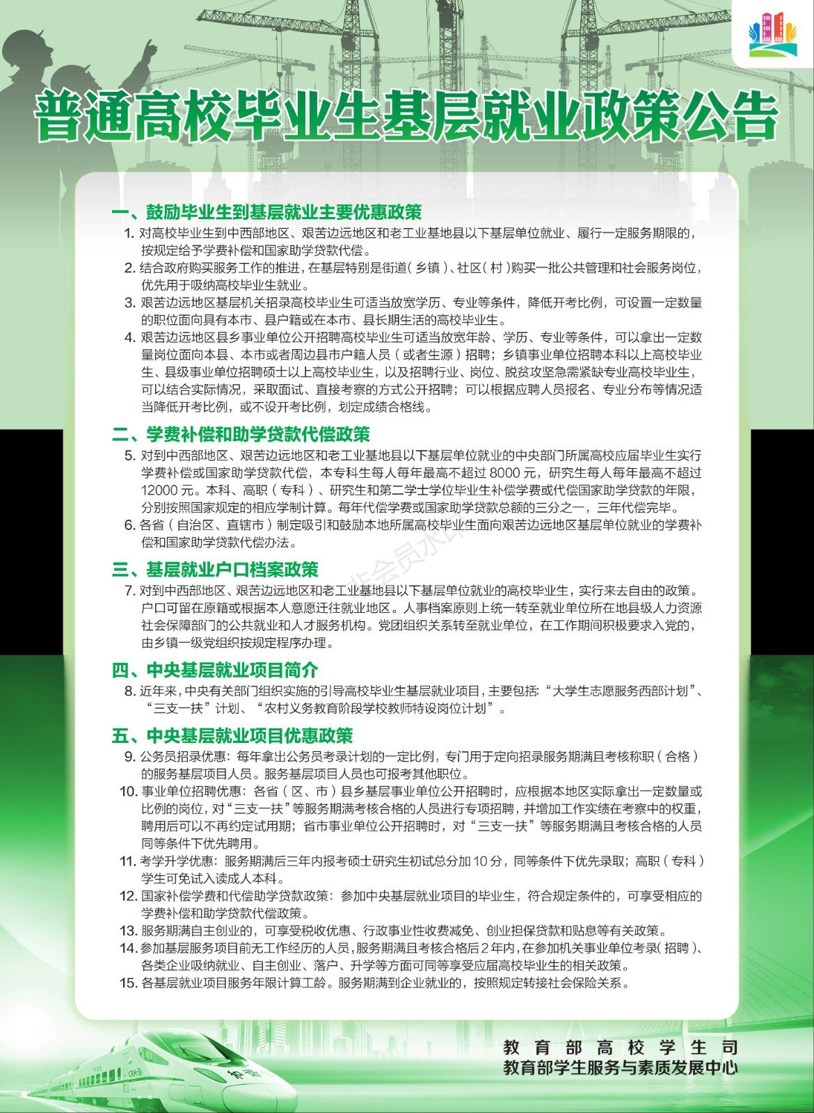 普通高校毕业生就业、创业、入伍政策及就业服务公告