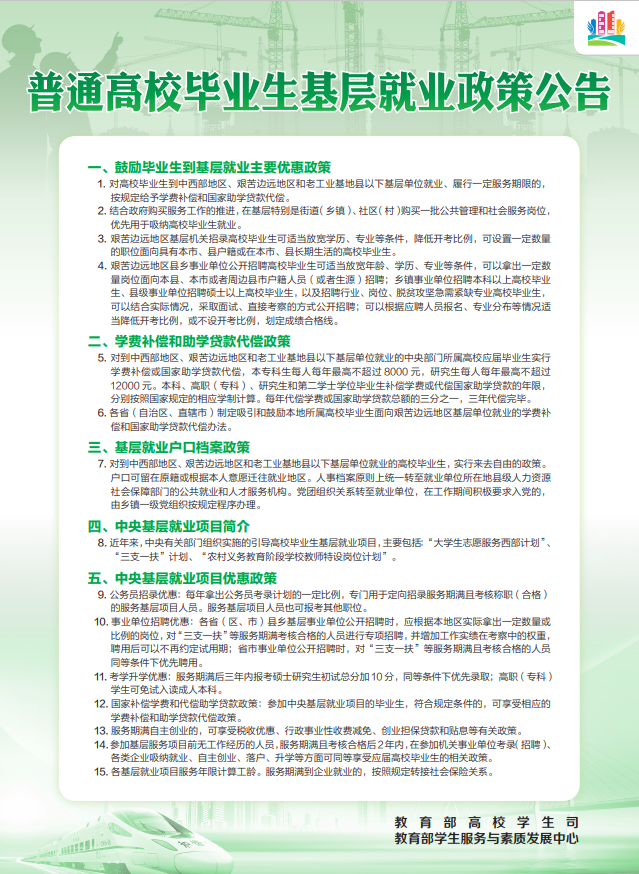 高校毕业生就业政策公告