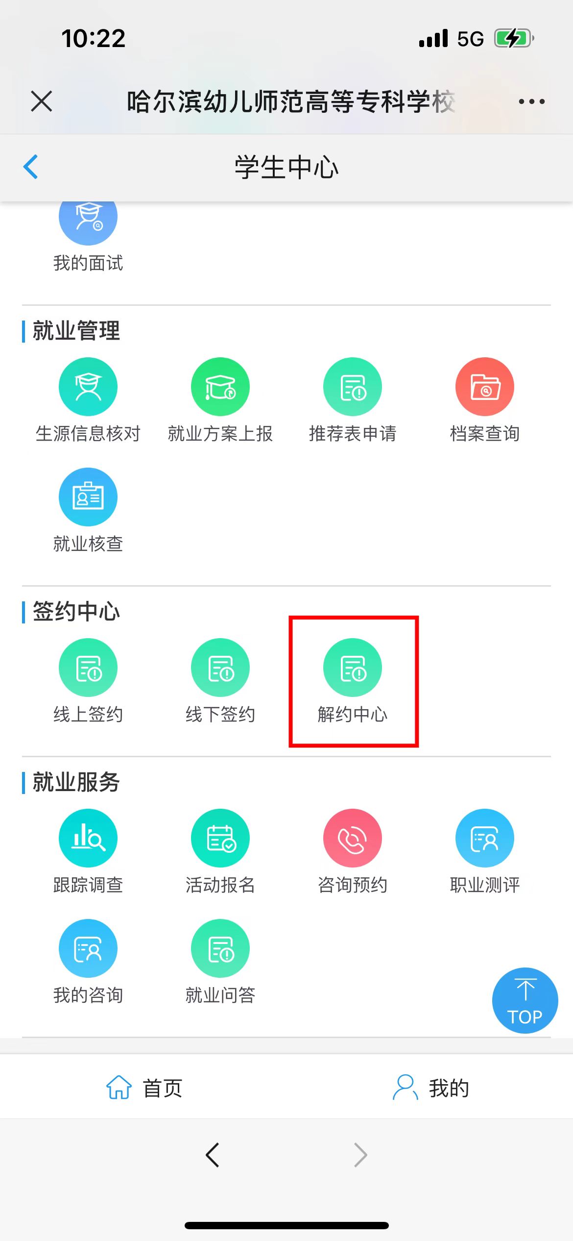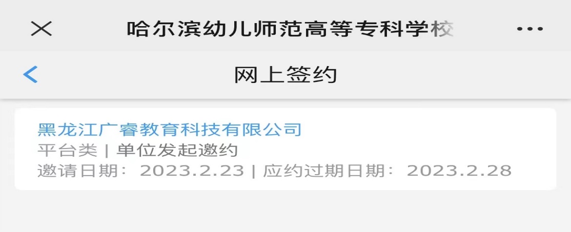 登录哈幼专就业服务平台微信端---主页---我的---输入账号密码----进入签约中心---线上签约---查看邀请函,如下图: