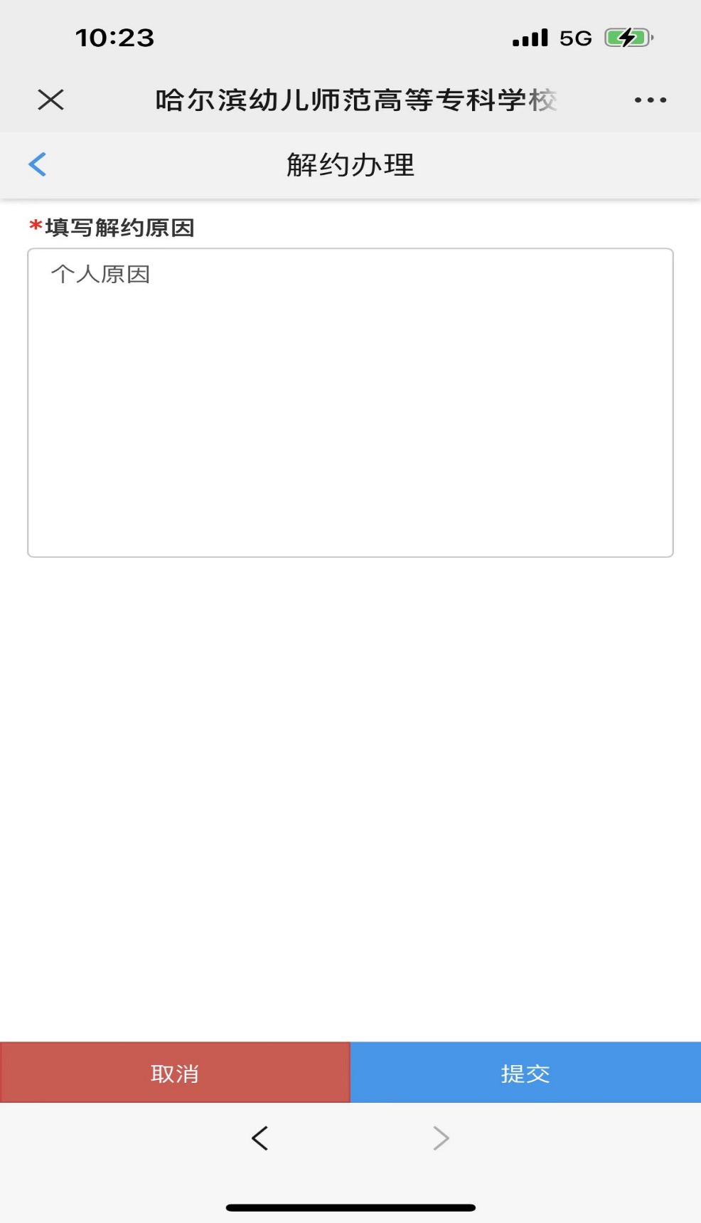 填写解约原因---提交---申请解约,等待签约单位及学校审核。如图