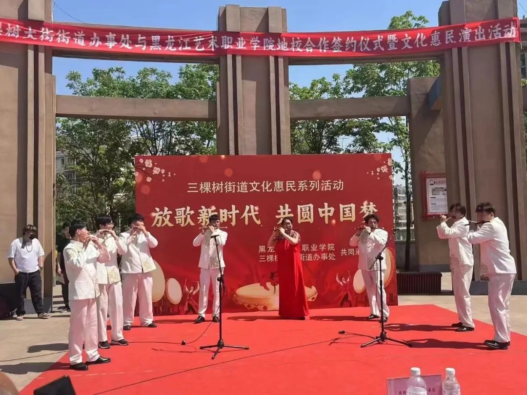 黑龙江艺术职业学院师生立足岗位做贡献,推进主题教育成果转化,精心策划、积极筹备,为三棵树街道广大群众献上了一场精彩的文艺惠民演出,整场演出节目形式多样,内容丰富多彩,涵盖音乐、舞蹈、二人转、曲艺等表演形式,用艺术的表现形式把党的“好声音”送到百姓家门口、心坎上。通过党建搭台、校地共建,在实践教学、人才培养、服务基层等方面形成良好的合作关系,实现党建资源共享、精神文明共创、基层治理共同参与的良好格局。