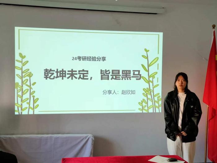 赵欣如同学通过PPT讲座的形式向备考学生分享她的考研成果和择校经验,她谈到选择院校需考虑到高校综合能力以及专业实力,但更重要的是要结合自身的实际。