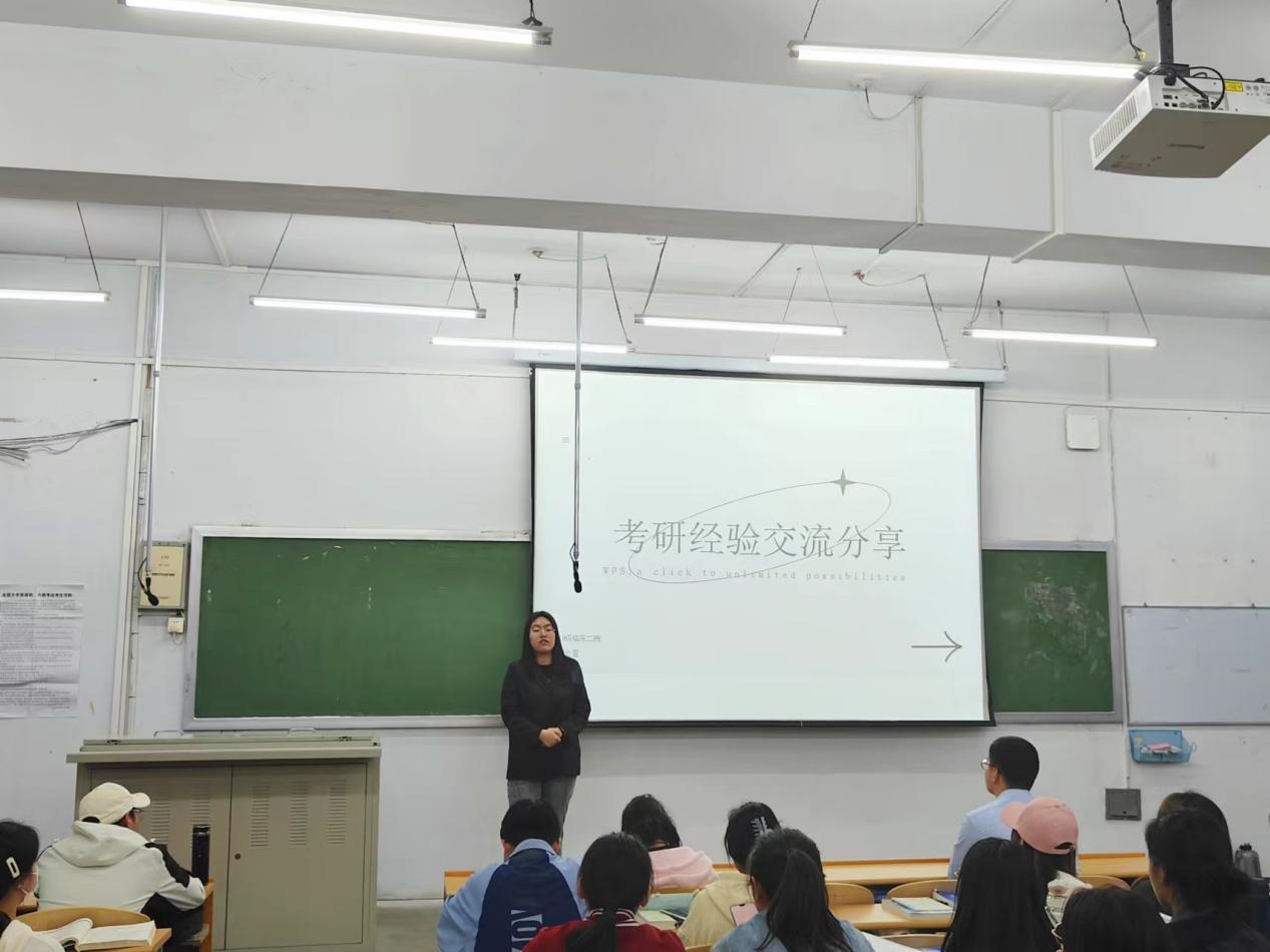 她们结合自己的实际情况,从备考方法、时间管理、心态调整等方面进行了精彩分享,讲述备考过程中如何克服遇到的挑战与困难。不仅提供了实用的建议,还以自己的亲身经历鼓励在座的学子们要勇敢追梦,不畏困难,坚持到底。通过经验分享让学弟、学妹们对考研充满了信心与期待。同学们纷纷就自己关心和困惑的问题进行提问,两位同学进行了耐心细致地解答。