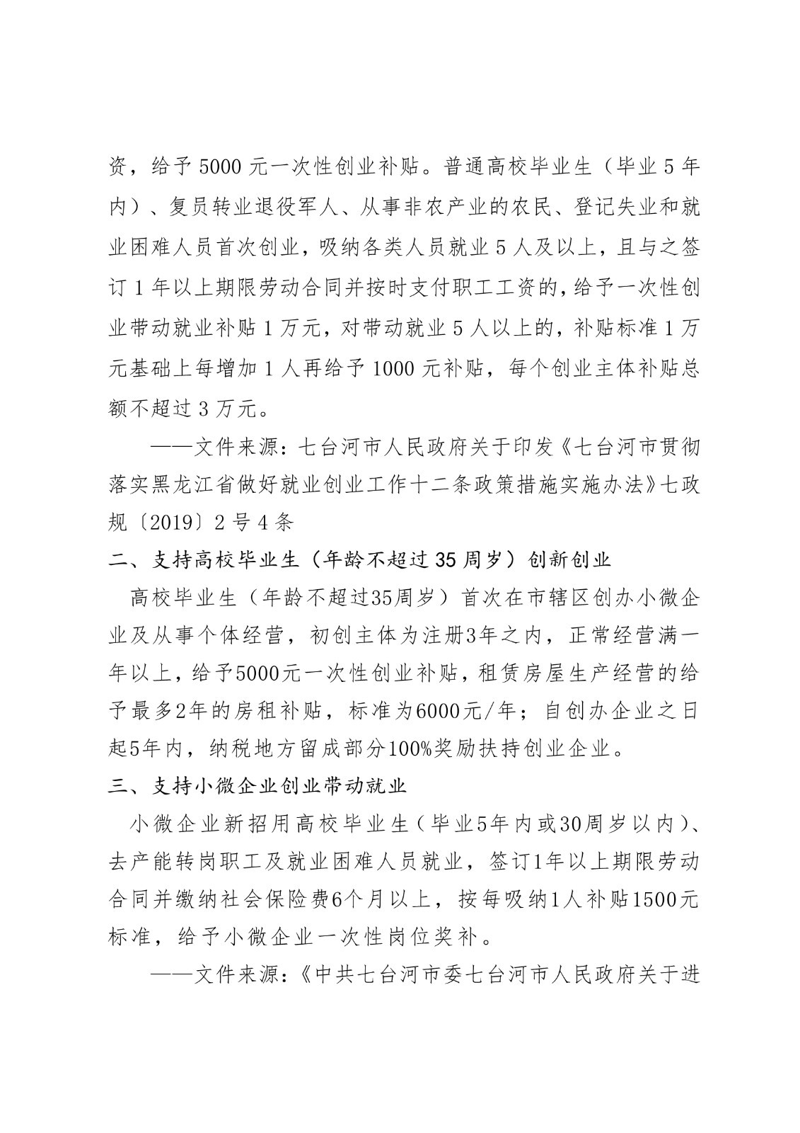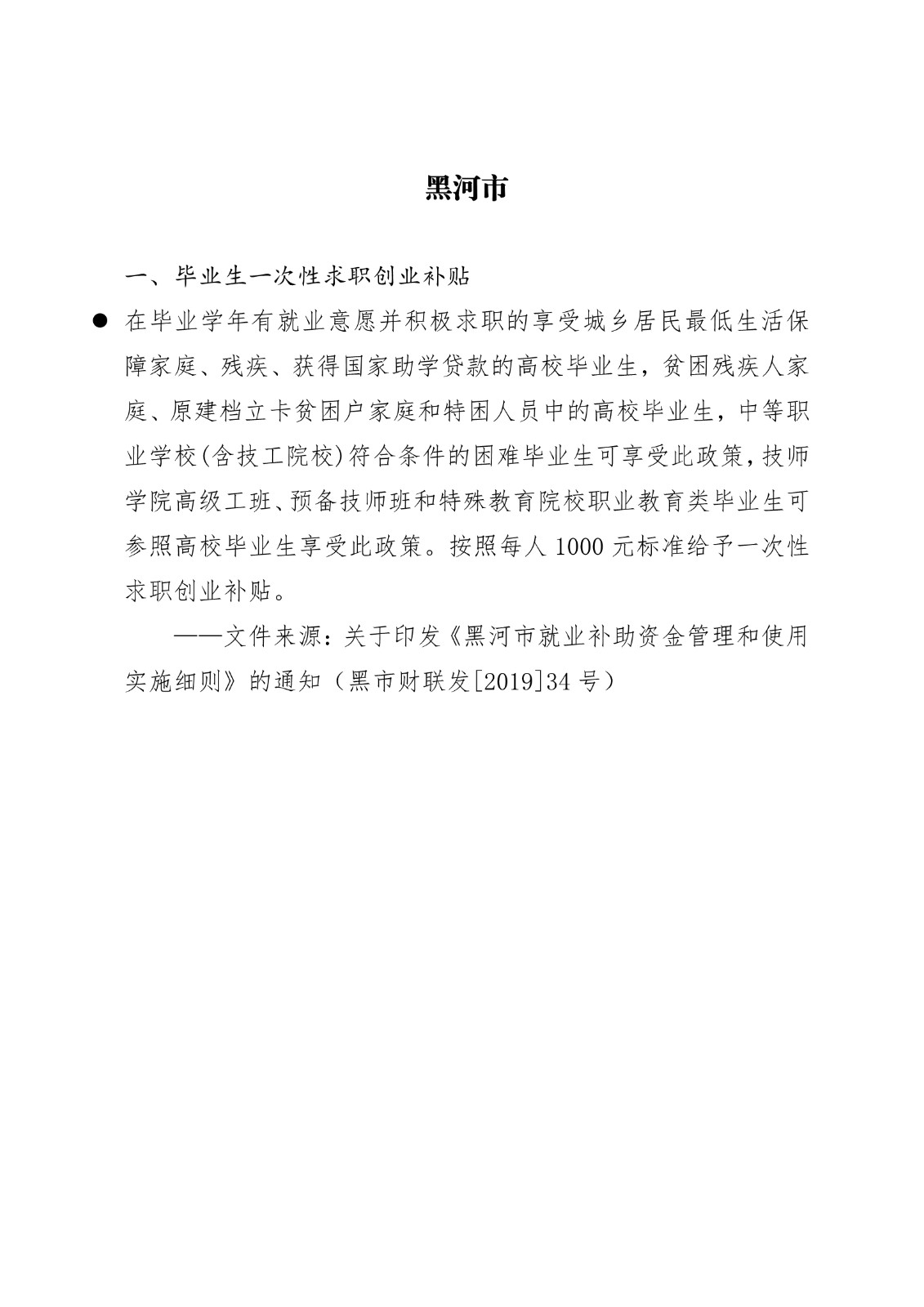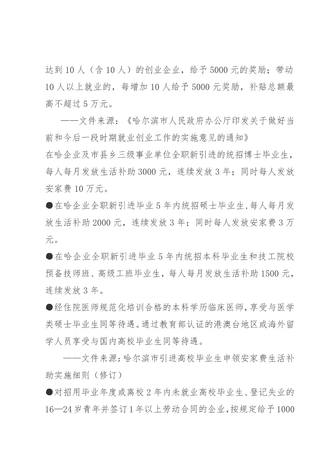 黑龙江省各地市高校毕业生就业创业政策摘录.pd