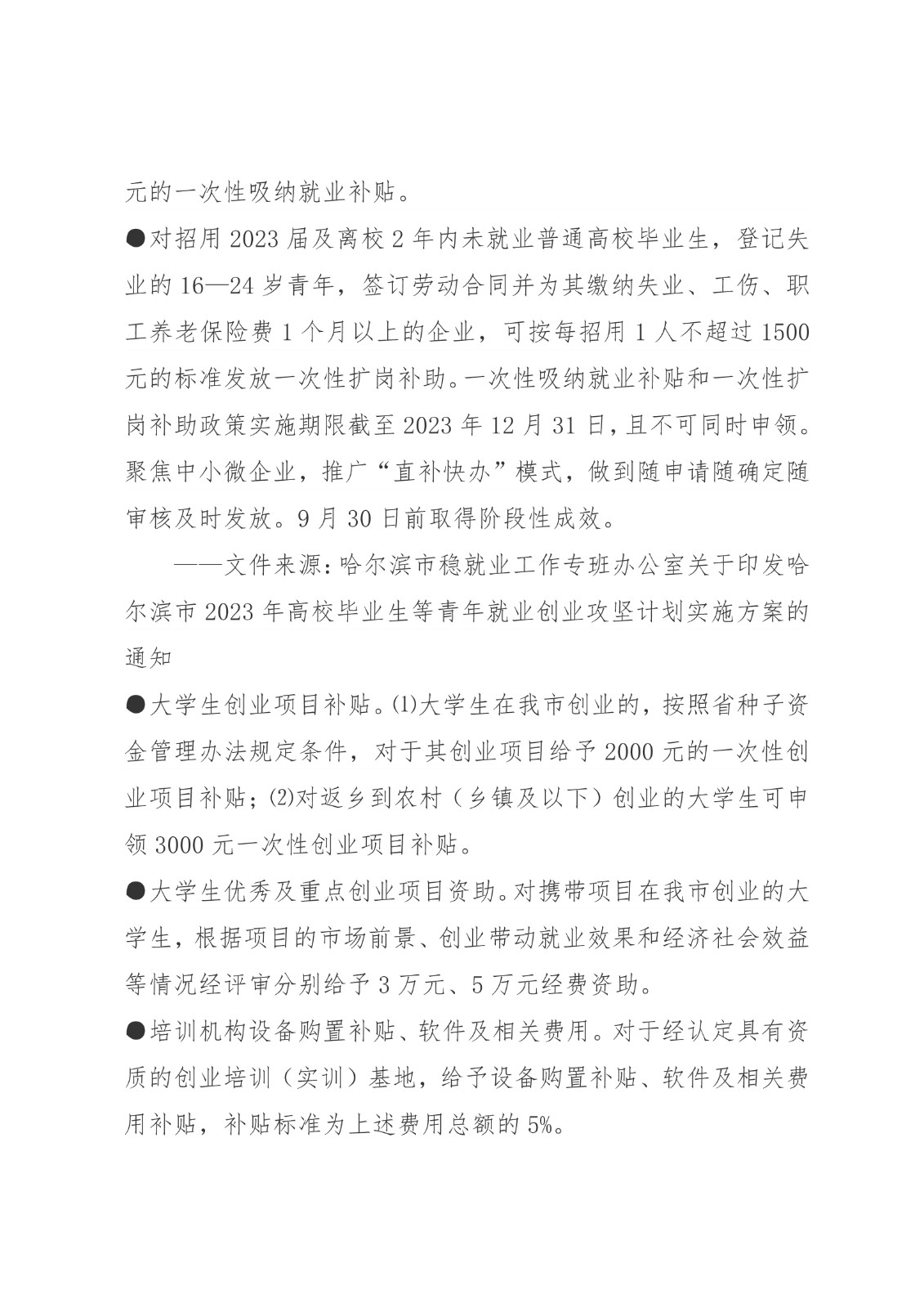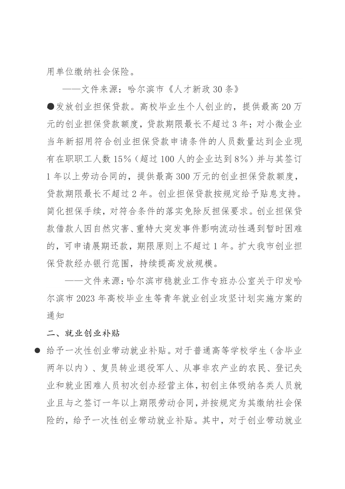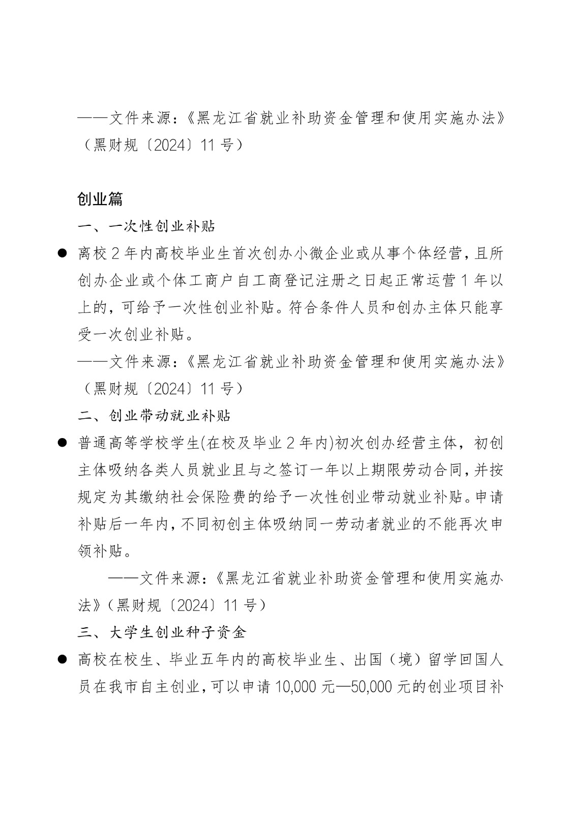 黑龙江省各地市高校毕业生就业创业政策摘录.pd