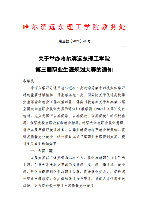关于举办哈尔滨远东理工学院第三届职业生涯规划大赛的通知