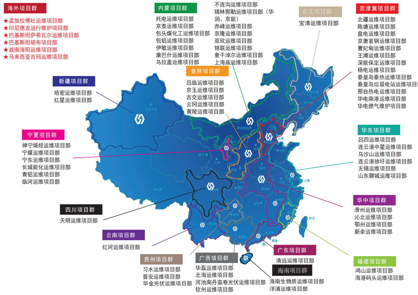 目前,公司现有骨干员工6000余人,现有90余个维护项目,维护机组总容量突破8000万兆瓦,累计检修800余台次。国内业务遍及26个省(市、自治区),并在巴基斯坦、印度尼西亚、越南、土耳其等国家和地区不断取得新的业绩。