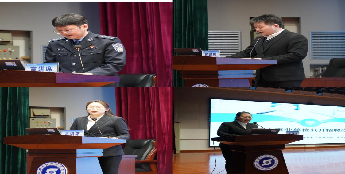 牡丹江市人社局、教育局、公安局、穆棱团市委、牡丹江市社会工作部有关同志、牡丹江友博药业有限责任公司的企业代表、学校招生就业处全体干部以及学校400余名意向留省、留牡的学生主动参加宣讲活动。活动现场,牡丹江市政府相关职能部门同志及企业代表围绕着国家基层项目(三支一扶、特岗教师、西部计划)、事业单位公开招聘政策指南、社区工作者、公安辅警考录政策、劳动关系政策及高新技术企业用人需求等方面进行详细解读,为学生们提供了全面、准确的就业政策信息和就业权利保障指导服务。