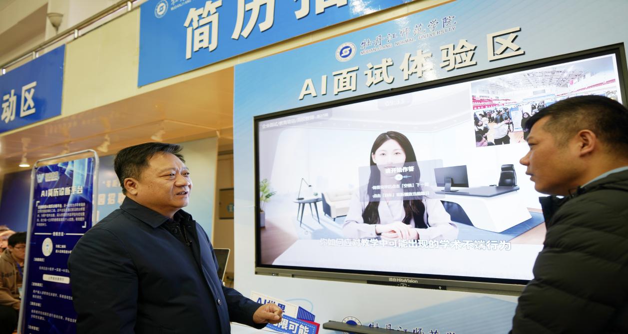 校党委书记王志浩,副院长、党委常委张晓祥亲临双选会现场,与各用人单位深入交流,了解用人单位招聘需求、我校毕业生在应聘过程中的表现及往届毕业生在就业岗位的综合表现等,并就人才培养、就业工作、服务保障等方面与用人单位进行探讨,希望用人单位多为我校的大学生就业工作提出宝贵意见。王志浩书记还到招聘会现场AI面试体验区,化身“就业体验官”,亲身体验AI面试指导。