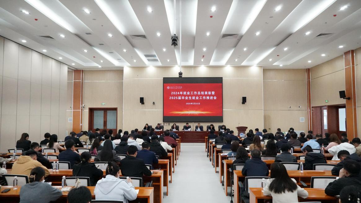 为深入贯彻落实党中央、国务院关于高校毕业生就业创业工作决策部署,全面总结2024年就业工作,扎实推进2025届毕业生就业工作取得实效。5月23日上午在实训楼报告厅召开2024年就业工作总结表彰暨2025届毕业生就业工作推进会议。学校副院长、党委常委张晓祥出席会议并讲话,组织部、招生就业处、学生处、团委、研究生学院、教务处、创新创业学院负责同志,各二级学院党委书记、院长、副书记和全体辅导员参加会议。会议由招生就业处处长孙蕾主持。