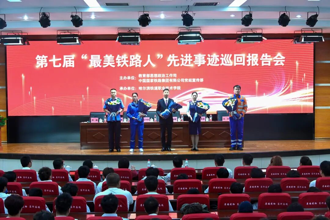 近日,由教育部思想政治工作司和国铁集团党组宣传部联合举办的第七届“最美铁路人”先进事迹巡回报告会在哈尔滨铁道职业技术学院隆重举行。5位报告团成员深情讲述了在铁路岗位上攻坚克难、精益求精、为民服务、执着坚守的“最美故事”。学院200余名师生代表在现场聆听“最美铁路人”的先进事迹。中国铁路哈尔滨局集团公司党委宣传部(企业文化部)副部长李冬浩、部员黄伟博、学院院长孟维军、副院长马绍南出席会议,会议由学院党委书记李颖主持。