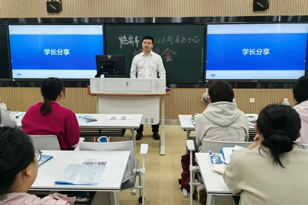 招聘会上,校友分享,传递榜样力量。现就职于鹤岗市人民医院的齐齐哈尔医学院06届学长结合自身成长经历,讲述了在鹤岗市这片沃土上如何从一名医学生成长为一名优秀医师的历程,其真挚的情感和奋斗的故事,极大地增强了招聘的亲和力和吸引力,引起了在座学子的强烈共鸣。