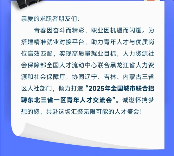 “就”在10月19日!邀请您来2025年全国城市联合招聘东北三省一区青年人才交流会逛逛